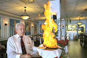 Yiasou restaurant welcomes diners with fresh seafood, sumptuous steaks and chops.
